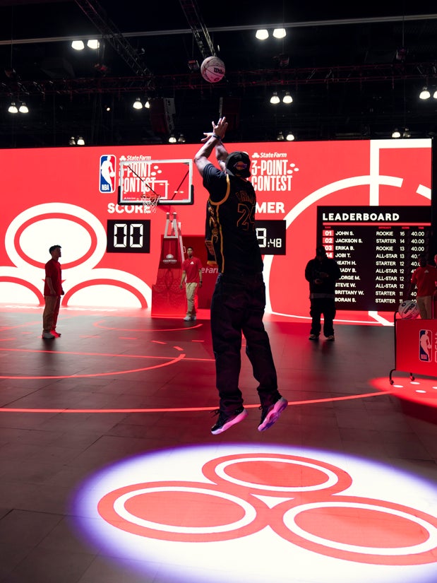 Its NBA Crossover activation gave fans a chance to shoot their own shot on an LED court, where they could choose from difficulty levels like Rookie, Pro or All-Star. The inclusive court automatically scaled up and down, changing in size, based on the age and abilities of participants. The brand hosted its own celebrity 3-Point Contest in the booth on Feb. 13 with “assister” Jake from State Farm, Druski, Jared McCain, Nigel Sylvester, Caleb Williams, Richard Jefferson and PlaqueBoyMax.