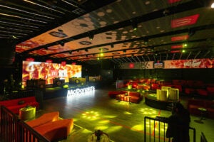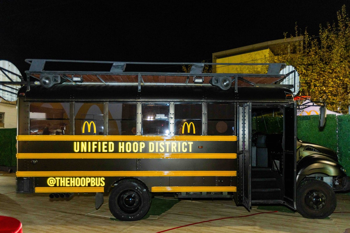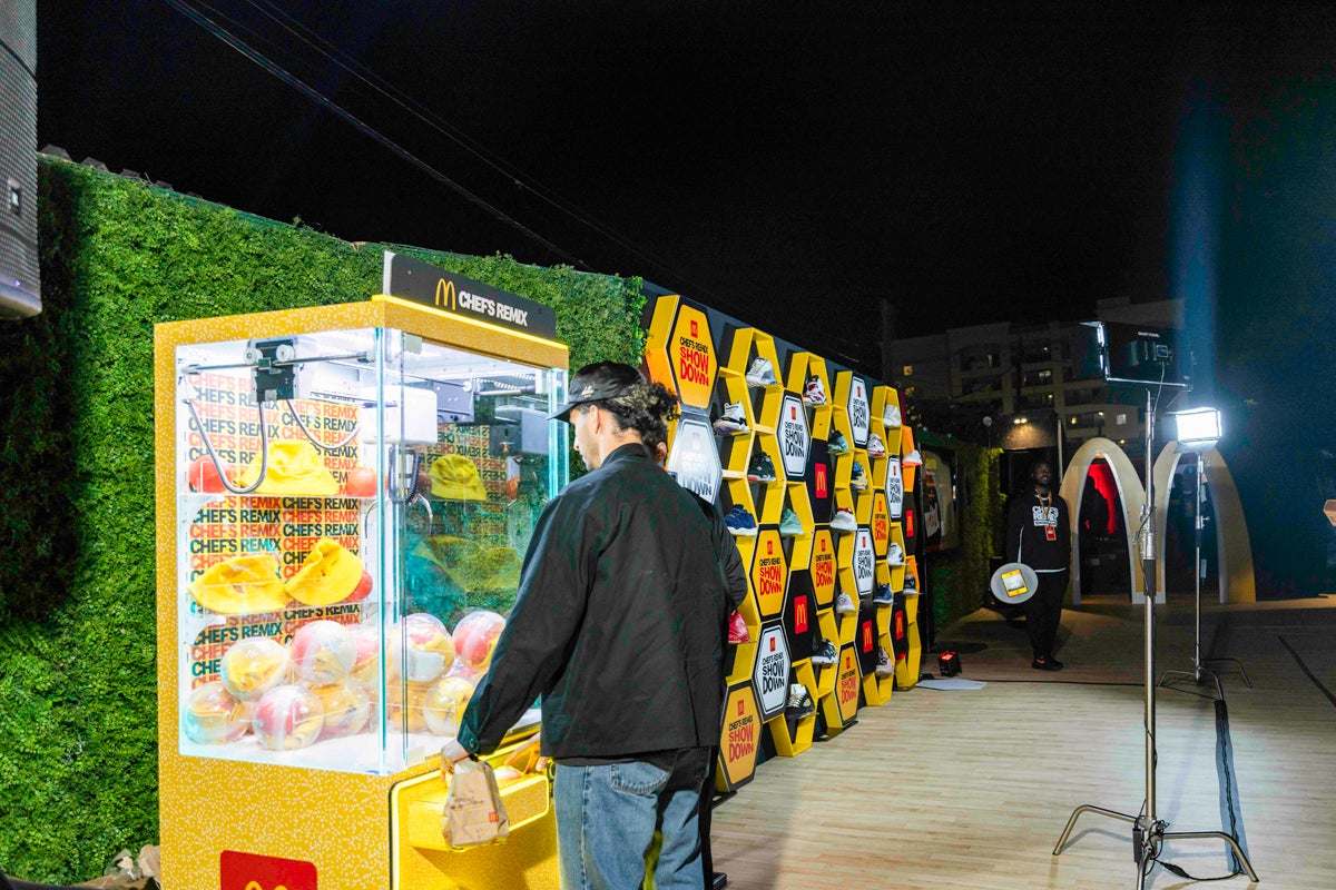 Post-showdown, an All-Star afterparty took over the venue with a live dj set, performances, suspended basketball installations, an indoor Hoop bus and a photo op that combined basketball and the honey theming. At a branded claw machine, attendees had a chance to score bucket hats, keychains, “I’m Lovin’ It” socks, mini vinyl basketballs and chargers. Adding a streetwear flair were a jersey customization station and sneaker shoe wall. (Agency: Walton Isaacson)