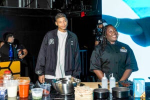 The main event was a TV competition-style showdown on an elevated stage with chefs, live commentary and large screens projecting the action. NBA players stepped into the competition as sous chefs.