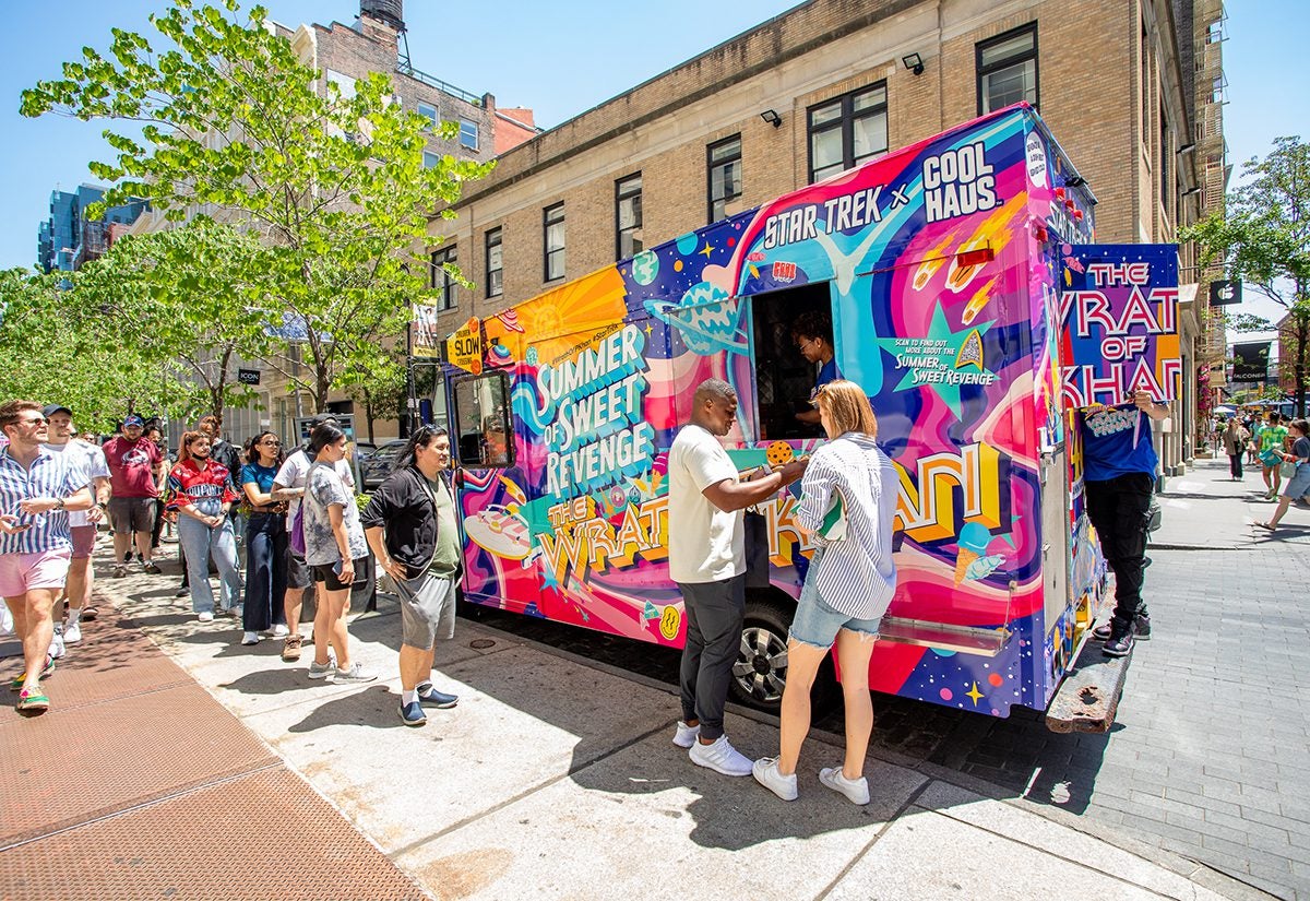 Paramount+ kicked off the campaign on June 4, the film’s anniversary, in partnership with ice cream brand Coolhaus, parking in New York City for the day to dish out complimentary, limited-edition “Wrath of P’Khan” ice cream sandwiches. Passersby could walk up to the wrapped truck, brimming with franchise imagery and a can’t-miss neon color scheme, to grab a treat, learn about Paramount’s “Star Trek” offerings and take a breather. The truck then traveled to Santa Monica Boulevard in time for National Ice Cream Day (July 17), and will be part of Paramount+’s San Diego Comic-Con activation this month.