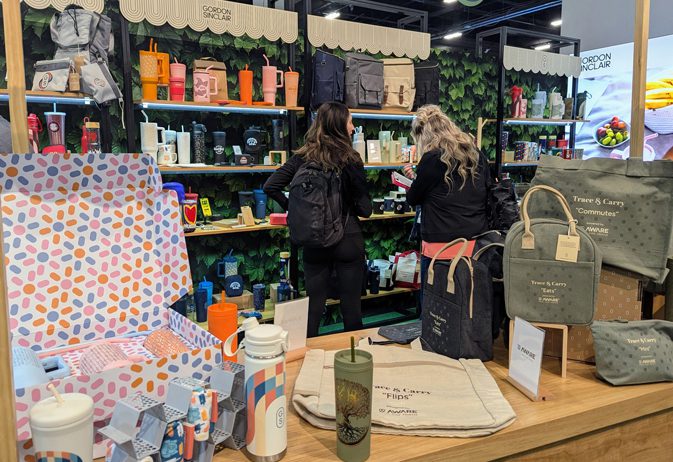 Offering the next step in sustainability, several companies, including Goldstar, Numo and Gemline, showcased products with Aware traceability. Typically seen in apparel, Aware uses blockchain technology to help create traceable, sustainable supply chains and digital product passports. A physical “tracer” particle is embedded into recycled fibers at the beginning of the production process, which can then be scanned at any point in the supply chain using a dedicated device to verify the authenticity and origin of the recycled material. Customers can scan a QR code on their tote or backpack and see its journey. How’s that for next-level transparency.