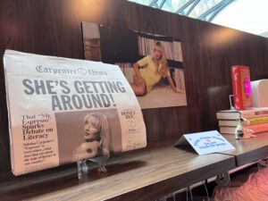 To add authenticity to the experience, the brand filled shelves with artifacts and vintage decorative items that, according to one 13-year-old superfan, were “OMG, 100-percent Carpenter’s aesthetic,” and easter eggs referencing Carpenter’s videos and lyrics. Our personal favorite item: a pair of white heels in a vintage suitcase that had the words “Mother” and “F*cker” printed on the soles (IYKYK!).