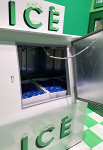 At the end of a line of freezer and refrigerator displays containing ice cream, eggs and milk, a pair of doors opened to reveal the second room. Giant versions of fries, Starry soda, a toothbrush, floss, steaks and an apple created a dynamic photo op inside a mirrored, green-illuminated tunnel.