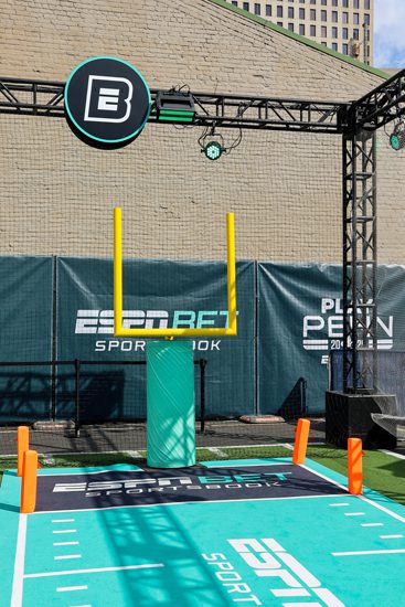 Just a half mile from Caesars Superdome, ESPN Bet popped up the Play Penn. The three-day tailgate activation spanned 35,000 square feet with football skills challenges, photo ops, gaming stations, food trucks, VIP hospitality, broadcast space for ESPN TV and Radio, and nighttime concerts by bands Better Than Ezra and Cowboy Mouth. (Agency: Wasserman Live)