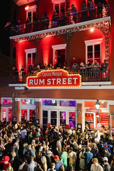 Captain Morgan converted Bourbon Street into Rum Street for the weekend, inviting fans to “Follow the Captain” through the French Quarter by scanning QR codes on cups, coasters and signs to score a cocktail, exclusive merch or a party ticket. The adventure came to life with balcony giveaways and street performances, but the grand finale was Captain Morgan’s exclusive Rum Street HQ Party, featuring a performance by T-Pain. (Agencies: NVE Experience Agency, Rum Street activation; Audacy, Rum Street HQ Party; Taylor, p.r.)