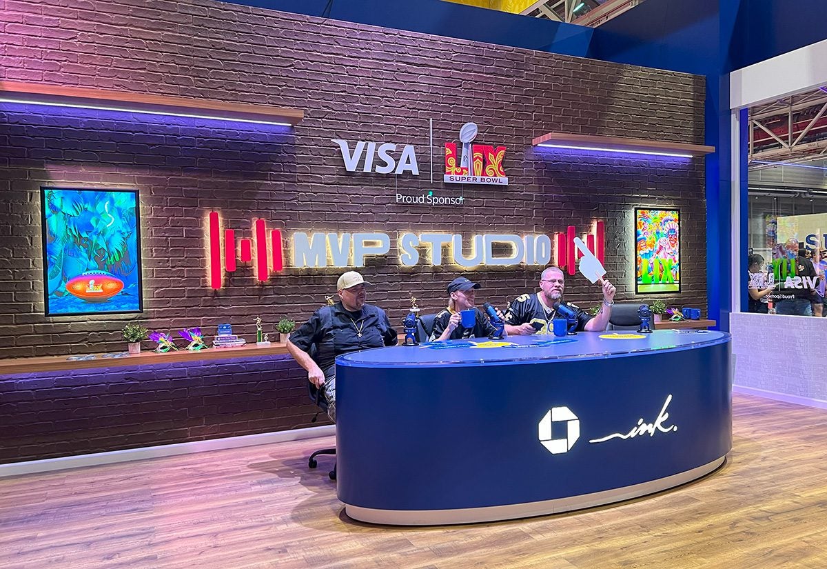 A sponsor of the NFL since 1995, Visa arrived in New Orleans with a multipronged activation strategy. The Visa Small Business Clubhouse presented by Chase Ink at SBX highlighted local business Sno-La, which handed out its signature Snoballs, and around another side of the booth was the MVP Studio set up with a sportscaster-style desk and podcast mics. Participants could take a seat and pose with branded coffee mugs and word bubble props with phrases like “Punt intended,” “Touchdown” and, our favorite, “Keep calm? No, the game is on!”