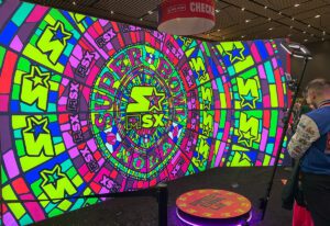 Lowe’s, official home improvement partner of the NFL, returned to SBX with a six-zoned booth, but switched it up with new activities themed to its store brands. New was the “Pergo DuraCraft Scramble,” where we happened upon Jameis Winston, quarterback for the Cleveland Browns, trying to slide scrambled wood tile pieces around with his feet to form the Super Bowl LIX logo. Kids did their best to help, or hinder, the process, until a Lowe’s brand ambassador stepped in to solve the game with them. Next door, Valspar’s “Painting the Spirit of Super Bowl LIX” showcased the officially licensed paint colors of the NFL, while a live mural was being created nearby.