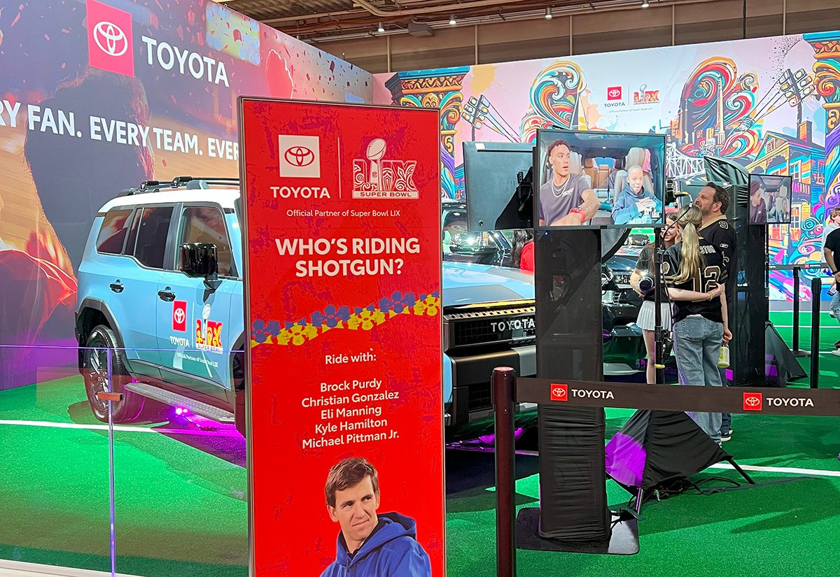 The line was long to get onto an elevated platform off the bed of a Toyota Tacoma that let fans jump into a foam pit while holding a football for the perfect touchdown catch photo, but also popular was “Who’s Riding Shotgun?” Inside Toyota’s 2025 Sequoia and Land Cruiser, attendees could co-star in a video alongside NFL stars Brock Purdy, Christian Gonzalez, Kyle Hamilton, Michael Pittman Jr. or Eli Manning. A little AR magic brought the scenes together to make it look like participants were driving alongside their favorite players. (Partners: Allied Sports, experiential; ASV Inc., build)