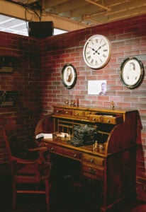 The real showstopper was the vignette dedicated to the invention of the typewriter in 1868, which featured a 300-pound typewriter installation attached to a wall to represent the tool’s immense impact on communication, including how it led to the restructuring of the workforce. Attendees could also explore the QWERTY standard English keyboard’s origins, among touchpoints.