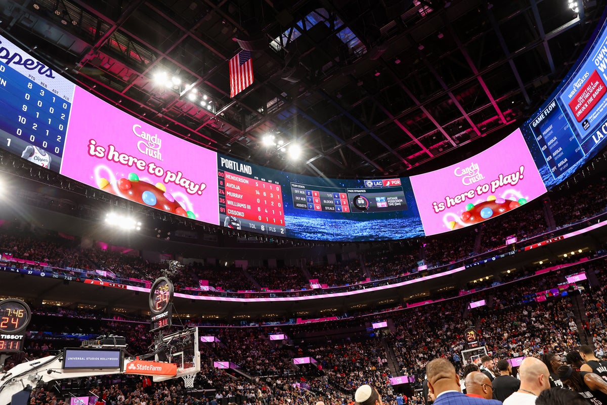 If a Bubblegum Troll wandering around Intuit Dome didn’t snag the attention of hoops fans during the LA Clippers vs. Portland Trail Blazers game, the “candified” arena, signature jingles, game-inspired giveaways, spirited halftime performance, merch and celebrity appearance surely sweetened the deal.