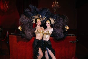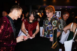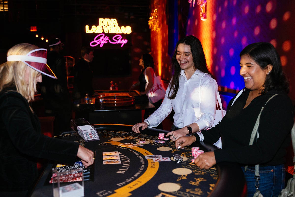 Next, it was on to the afterparty, where Las Vegas showgirls, a magician, table games (for fun, only), from the “hotel” bar, photo moments and a “Hacks”-themed gift shop awaited.