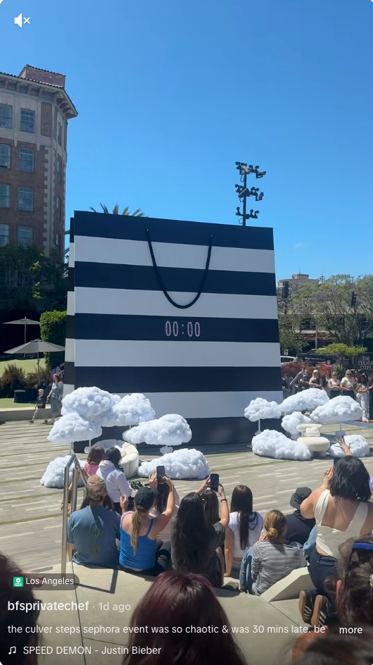 Once on-site, many reported that the event started 30 minutes late, but that a countdown clock installed on a larger-than-life Sephora bag led many to speculate that a major product drop or celeb appearance was about to take place.