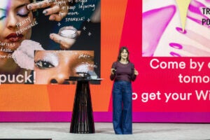 While on-site, attendees were invited to “future-proof” their skin by building a policy plan around Olay’s Super Collection, billed as the ultimate skin investment (skinvestment?). After learning about the “policy overview” through a brief presentation, visitors snapped photos in office-themed vignettes, which were designed as “proof of insurance” moments built for content capture.