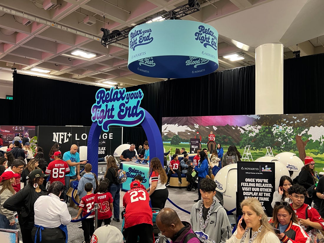 Official Pharmaceutical Partner of the NFL, Novartis launched its “Relax, it’s a blood test” national prostate cancer awareness initiative at SBX with the “Relax Your Tight End” booth that offered several calming touchpoints.