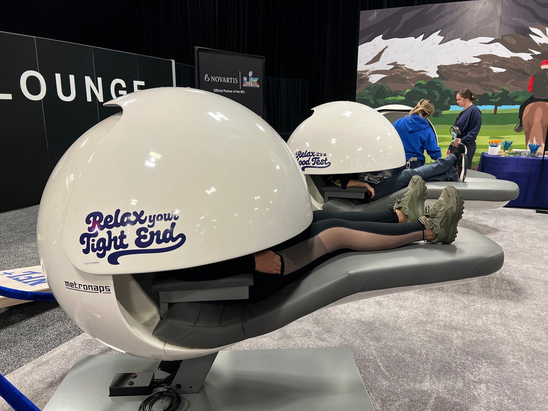 With the goal of making cancer screening feel less intimidating and more actionable, Novartis encouraged attendees to take a rest in one of six Relax Pods (MetroNaps EnergyPods) and also add their touch to a paint-by-numbers wall of a mountain scenery depicting former NFL tight end Rob Gronkowski riding a horse. The company then aired its “Relax, it’s a blood test” commercial during Super Bowl LX, featuring several current and former NFL tight ends.