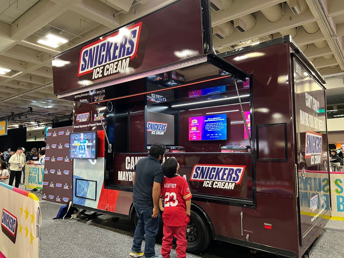 Football games and skills challenges are available at SBX every year, but they’re rarely fully branded by their sponsors. Snickers caught our eye with its chocolate bar theming of the Satisfying Catches obstacle course that led to a final football catch and dive into the Snickers end zone mat. For their efforts, participants were rewarded with Snickers Ice Cream, Snickers Peanut Butter or Skittles from the Snickers Ice Cream Truck.