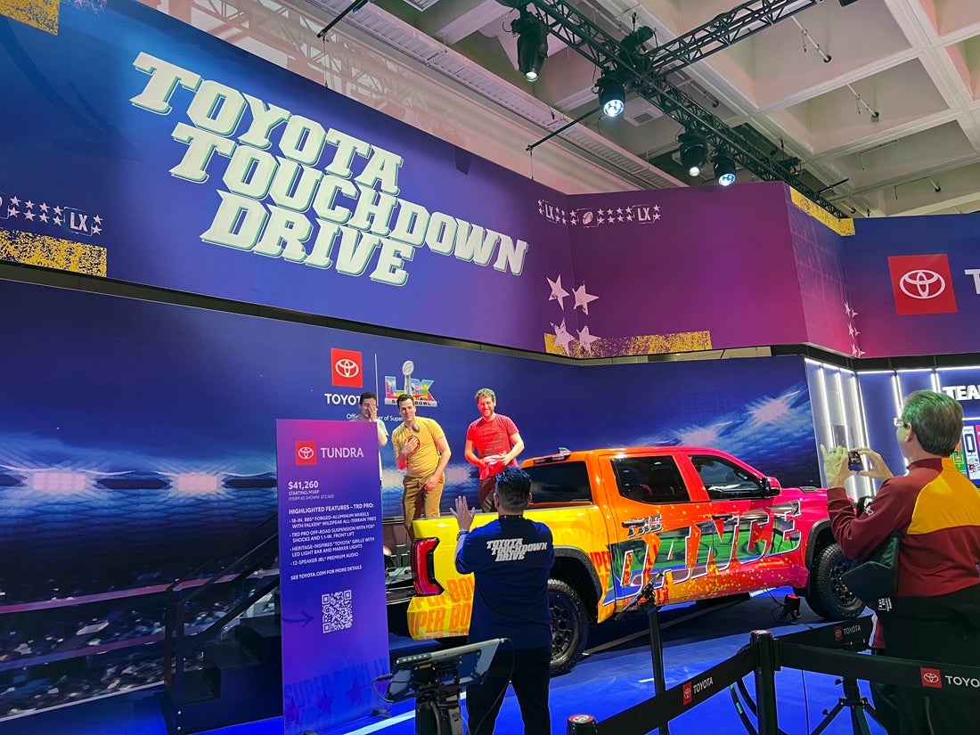 Toyota arrived at SBX with a new footprint, Toyota Touchdown Drive, which offered four zones: The Drive, The Dance, The Draw and The Drop. First, The Drive had attendees race custom NFL team-branded mini bZ slot cars that went through and around an actual Toyota bZ car. At The Dance, fans stepped into the bed of a Toyota Tundra to perform a touchdown dance that was recorded and delivered as a digital video to their mobile device. That’s where we saw the most enthusiastic fans of the day.