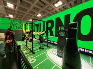 Fans then had a chance to put their football skills to the test and run a ball down a branded field with obstacles and fork field goal posts. Tasty lemonade was served at the end in Uber Eats cups as a refreshing reward.