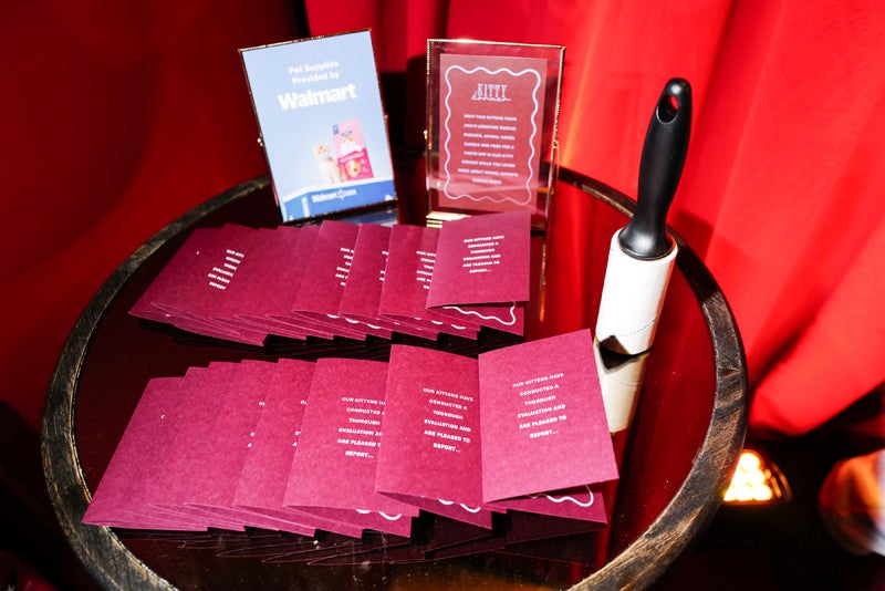 Other highlights spanned an Illustration Station offering personalized live portraits of attendees’ pets; a roaming Lint Roller Attendant; a fashion-centric Kitty Klaw claw machine; and a pool table transformed into a product installation with nods to cat parenthood, from perch structures to allergy meds and bandages styled in brass bowls to branded matchboxes to a three-tiered cake. (Agencies: Sterling Social, production; PR Dept Inc. and Manifest, p.r.)