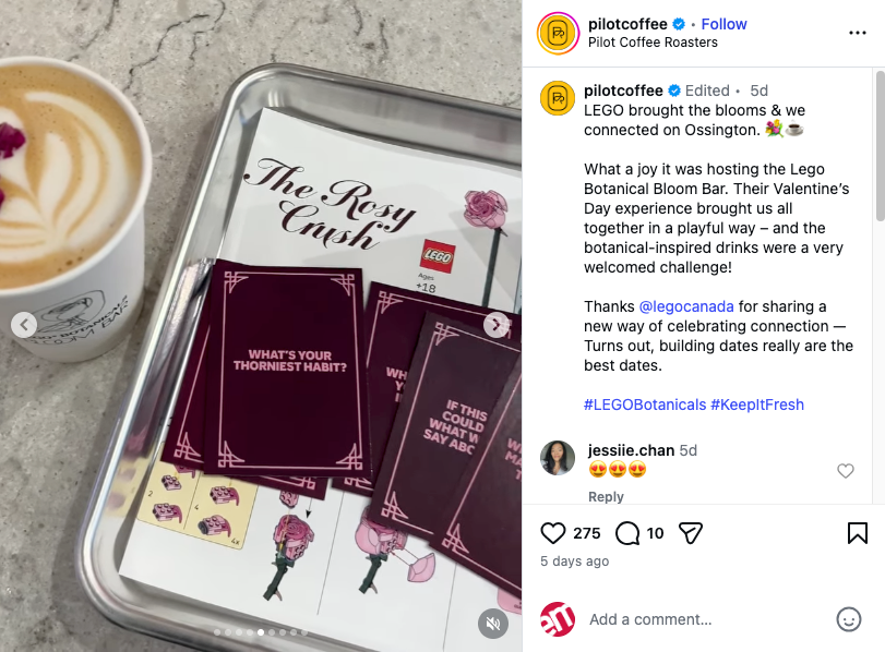 Last year, Lego launched a global Botanicals Le Florist Flower Truck Tour to celebrate Valentine’s Day and its Botanicals collection. This year, the brand activated all-ages Lego Botanicals Bloom Bar events around the world.
