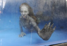 WEBTOON’s cat-headed characters performed everyday activities in the streets while hinting at the show’s more sinister plot line.