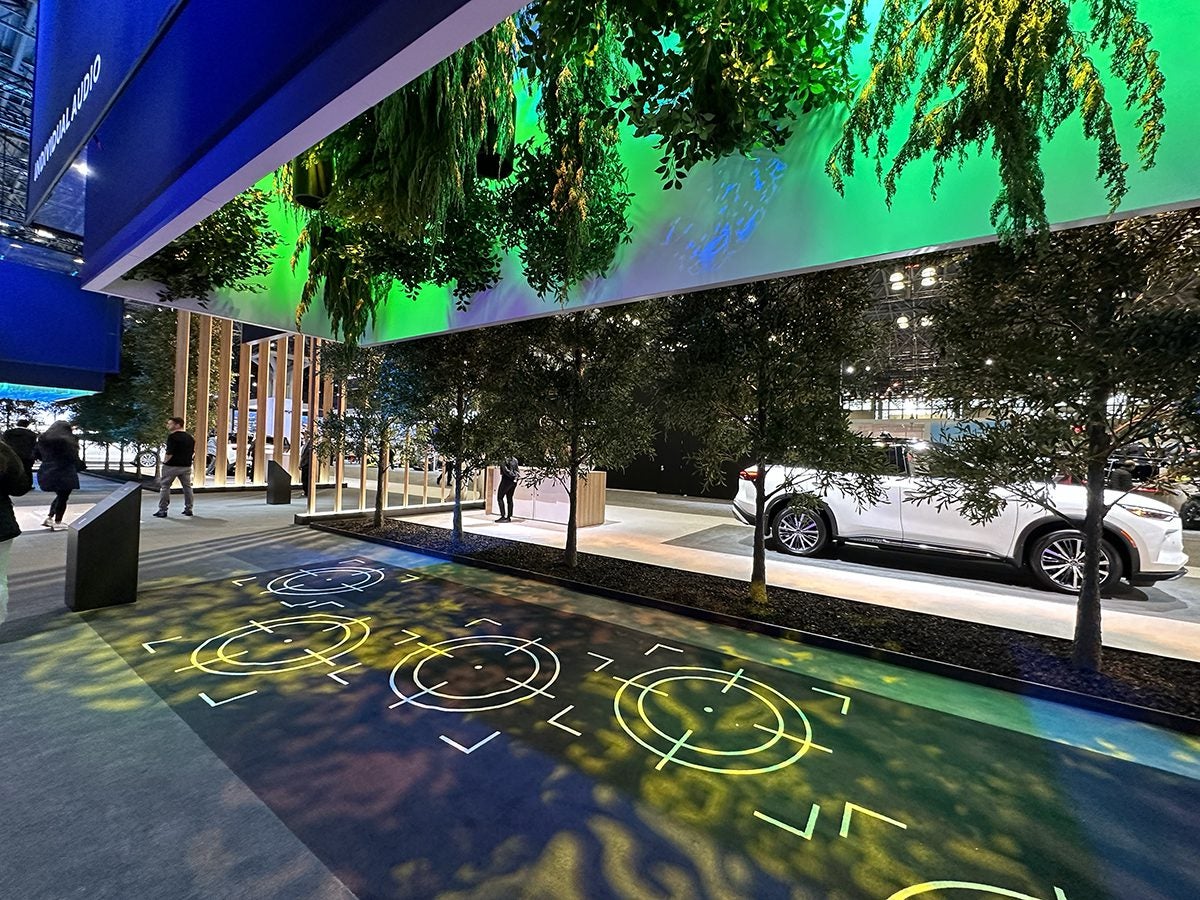 The 2024 New York International Auto Show featured a tight cast of brand characters as well as lessons in supersized booth footprints. Among standout exhibits was Infiniti’s Zen-inspired space, which featured architectural accents, faux trees, neon hues, and a multisensory journey for attendees to learn about the Infiniti QX80’s features.